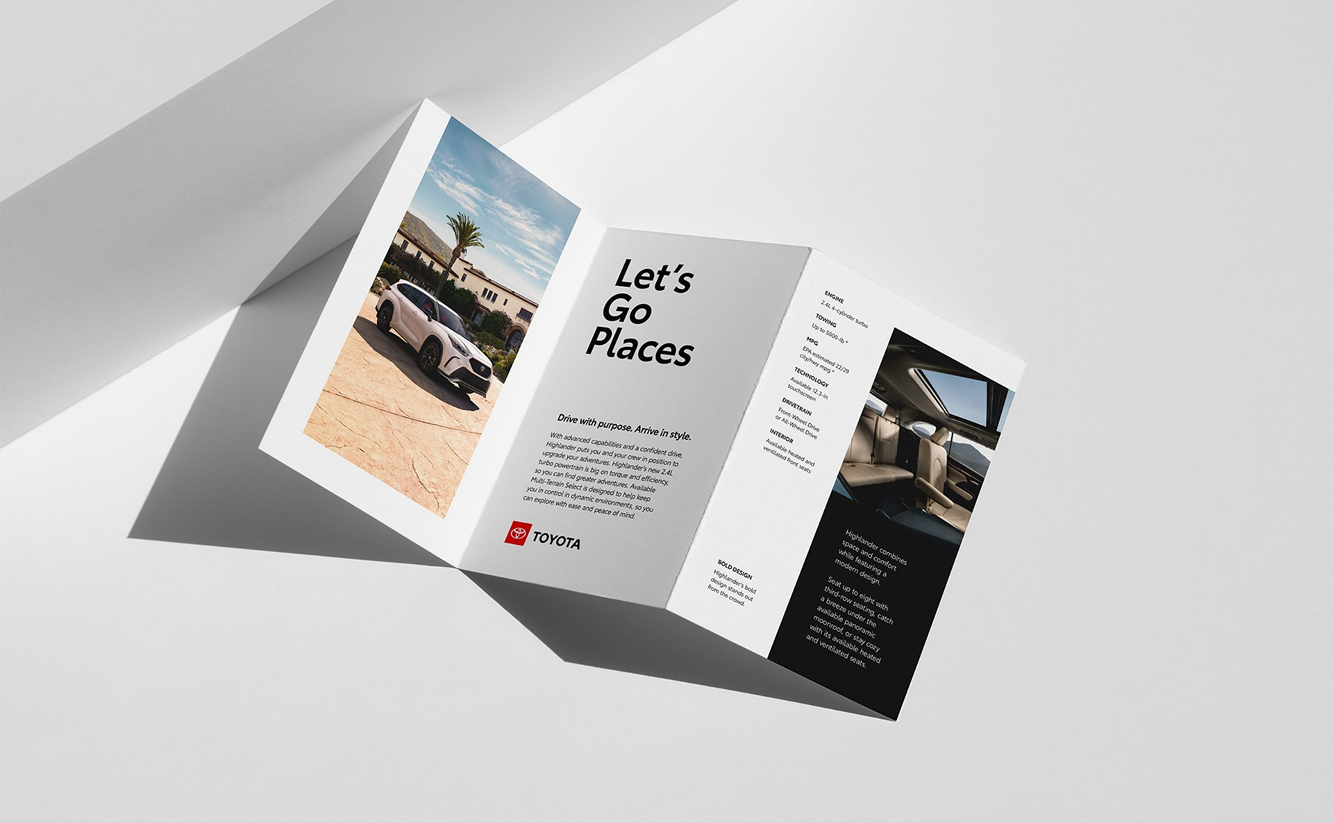 Unmistakably Toyota is the panoramic brand guidelines for everything seen, heard and felt by the brand. Working as lead designer, I helped to shape the comprehensive Toyota Visual Identity System. From top to bottom, the system addresses brand architecture, informational hierarchy, color, typography, logos, photography and other critical elements to create a more effective brand expression that ensures every new communication resonates as Unmistakably Toyota.
